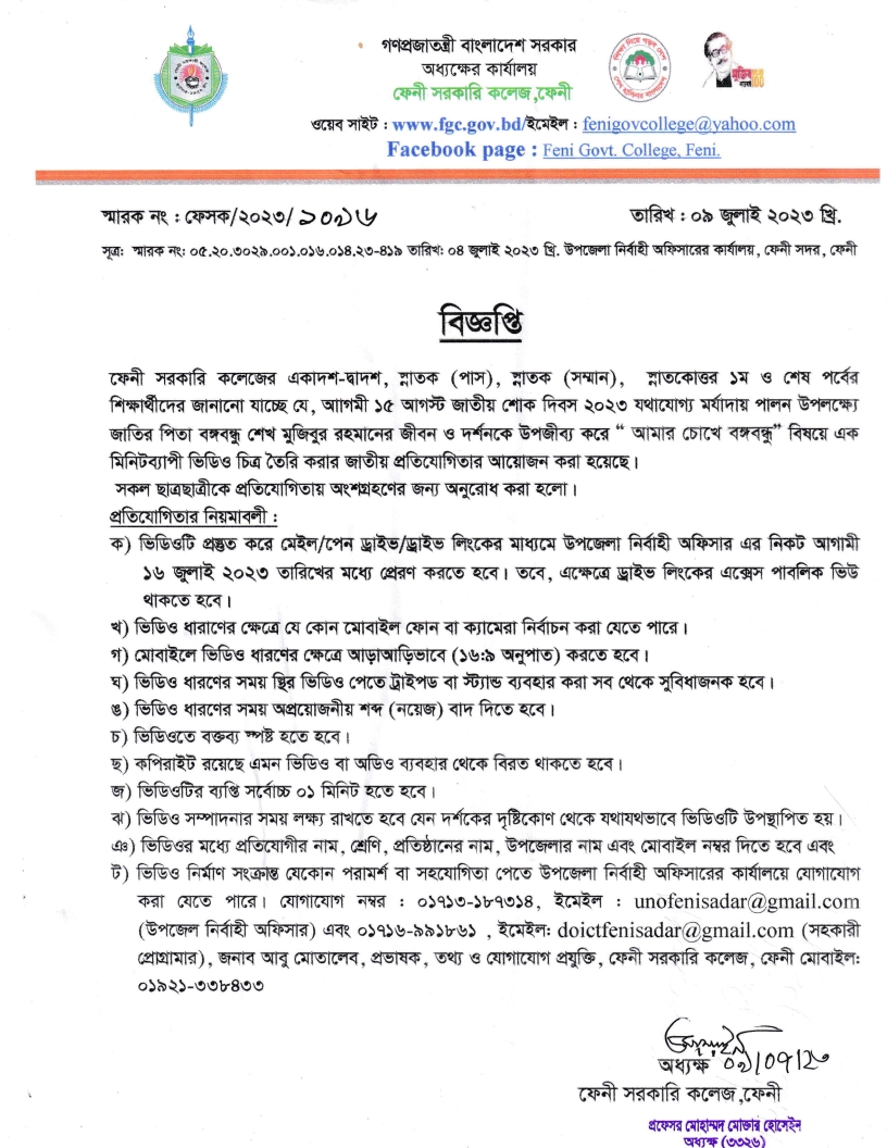 •    আমার চোখে বঙ্গবন্ধু বিষয়ে এক মিনিটব্যাপী ভিডিও চিত্র তৈরি সংক্রান্ত বিজ্ঞপ্তি
